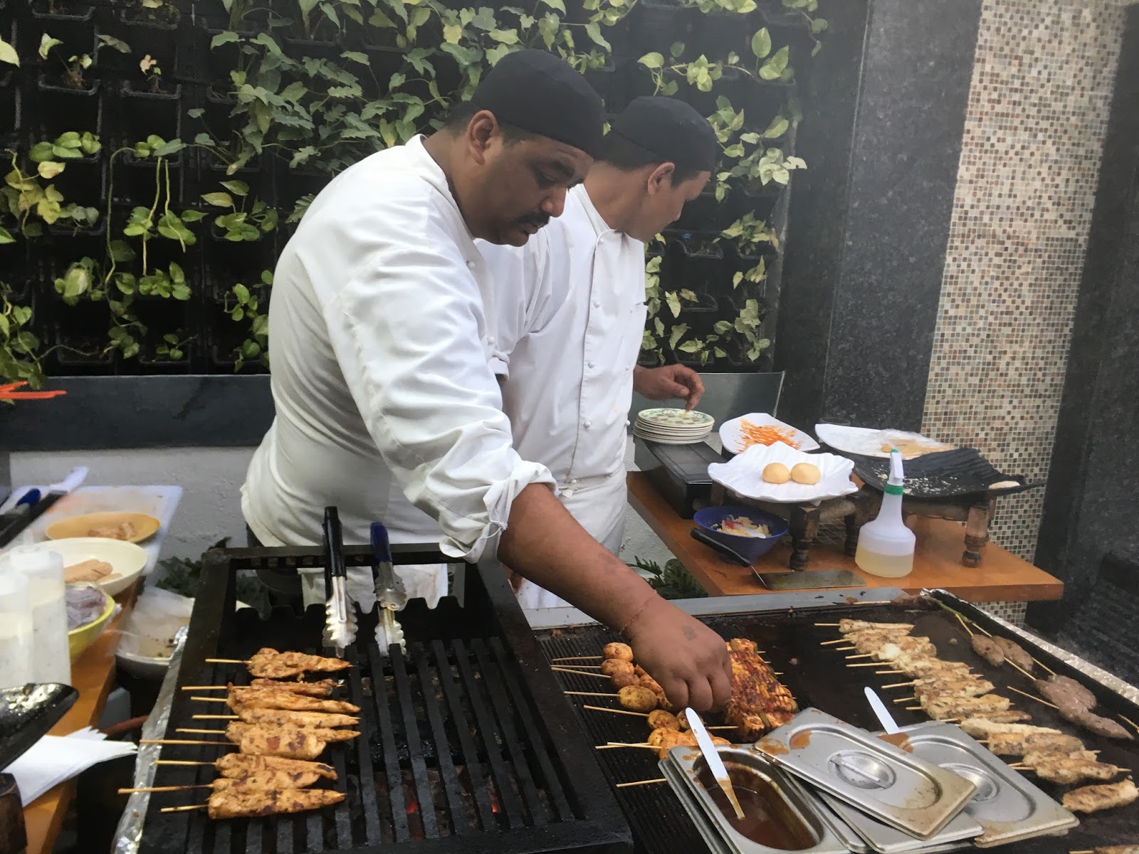 The cottage cheese and exotic vegetable skewer was more than perfect. The cajun spiced chicken skewer and garlic thyme marinated fish, were a mouth melting experience. The spices were just right and both chicken and fish very tender.